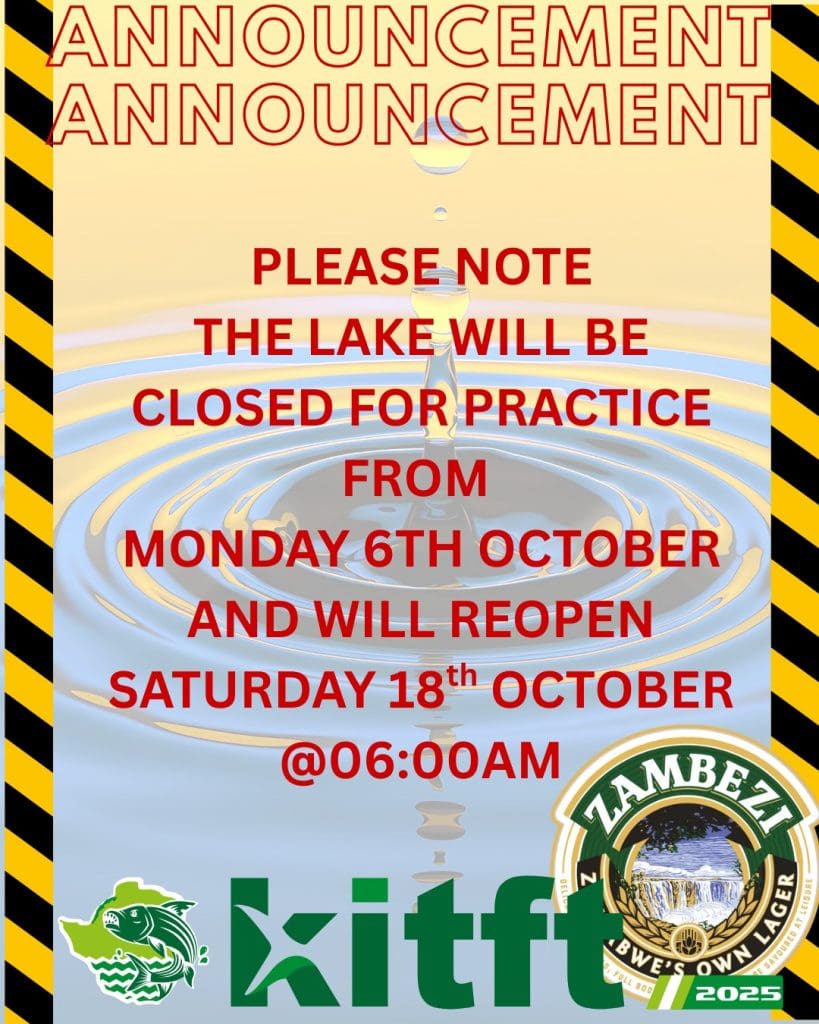 Please be advised that Lake Kariba will be officially closed for practice fishing ahead of the 64th Zambezi Lager Kariba International Tiger Fish Tournament.